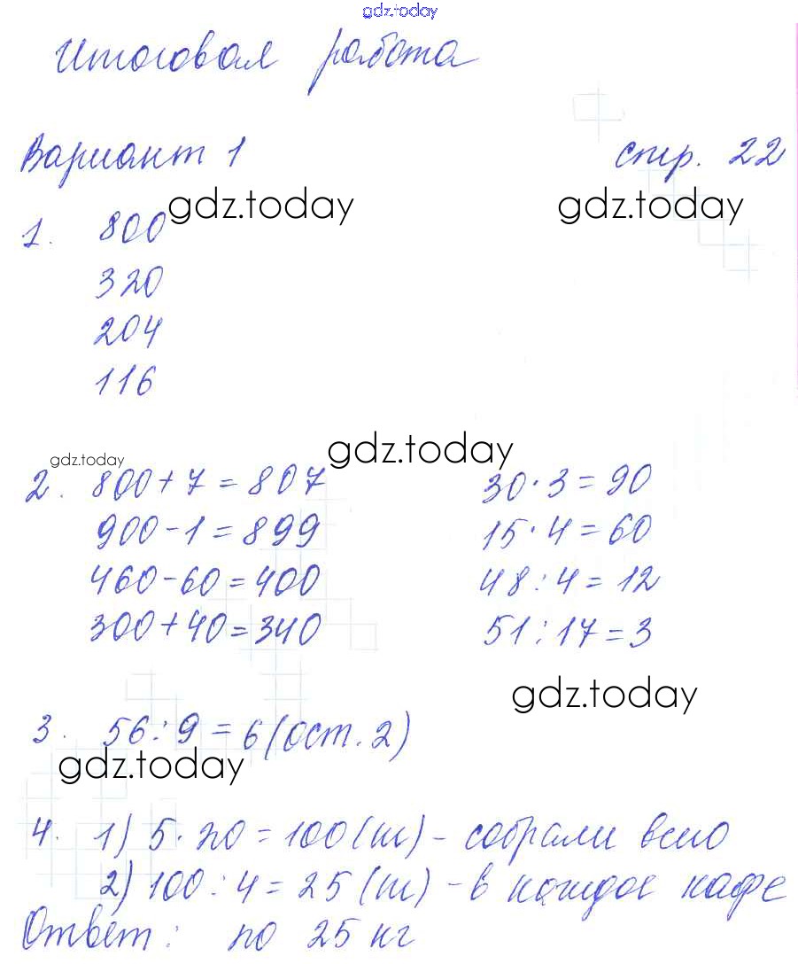 На страницах сайта gdz.today вы найдете учебный и вспомогательный материал, направленный на улучшения знаний школьной программы. ГДЗ - онлайн мир знаний Решение к части 2 (страницы) 22 Контрольным работам по Математике для 3 класса Рудницкая Экзамен УМК 2017