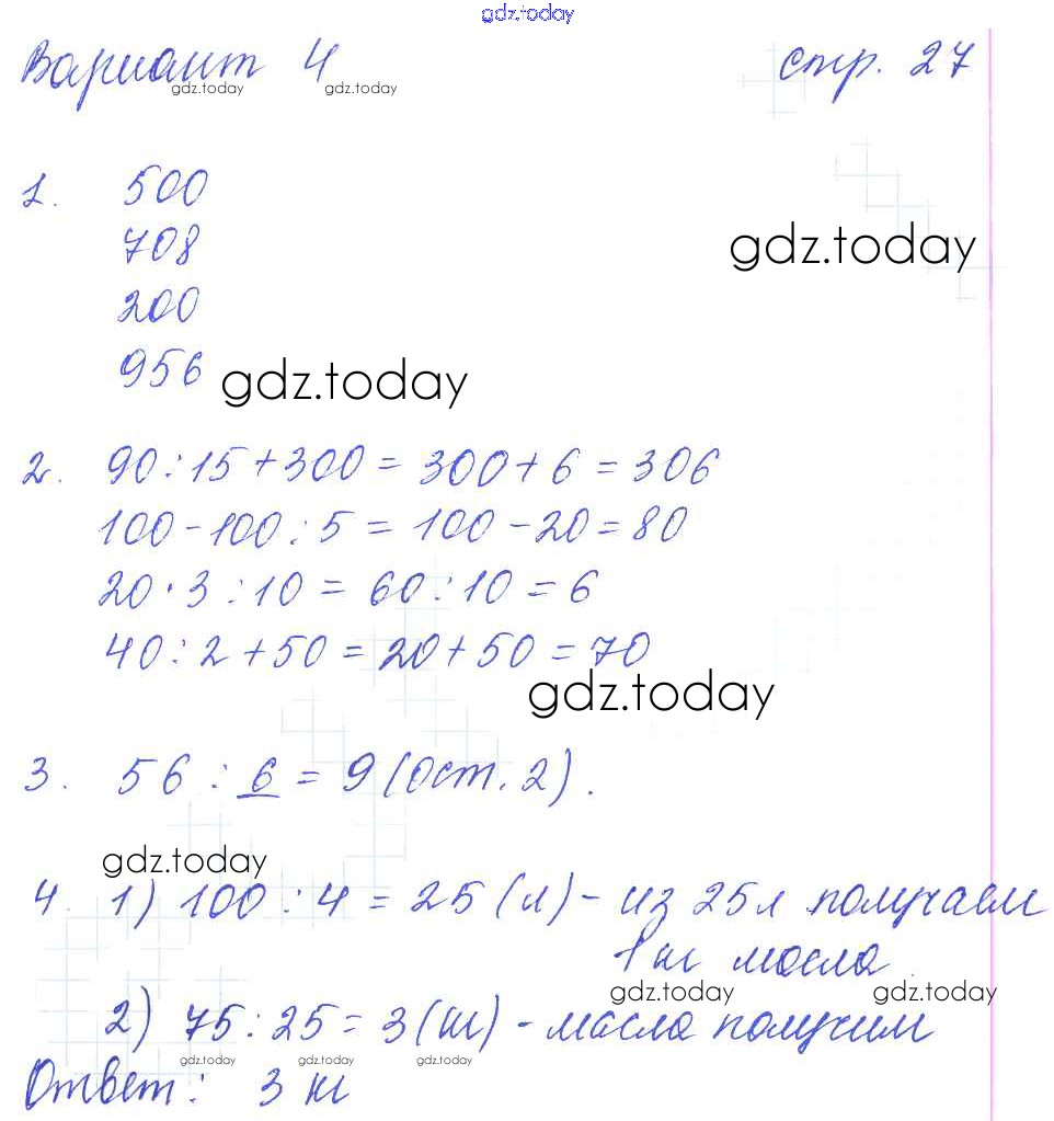 На страницах сайта gdz.today вы найдете учебный и вспомогательный материал, направленный на улучшения знаний школьной программы. ГДЗ - онлайн мир знаний Решение к части 2 (страницы) 27 Контрольным работам по Математике для 3 класса Рудницкая Экзамен УМК 2017