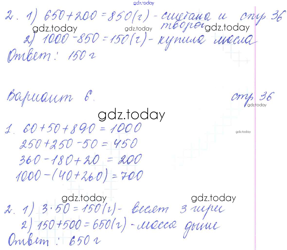 На страницах сайта gdz.today вы найдете учебный и вспомогательный материал, направленный на улучшения знаний школьной программы. ГДЗ - онлайн мир знаний Решение к части 2 (страницы) 36 Контрольным работам по Математике для 3 класса Рудницкая Экзамен УМК 2017