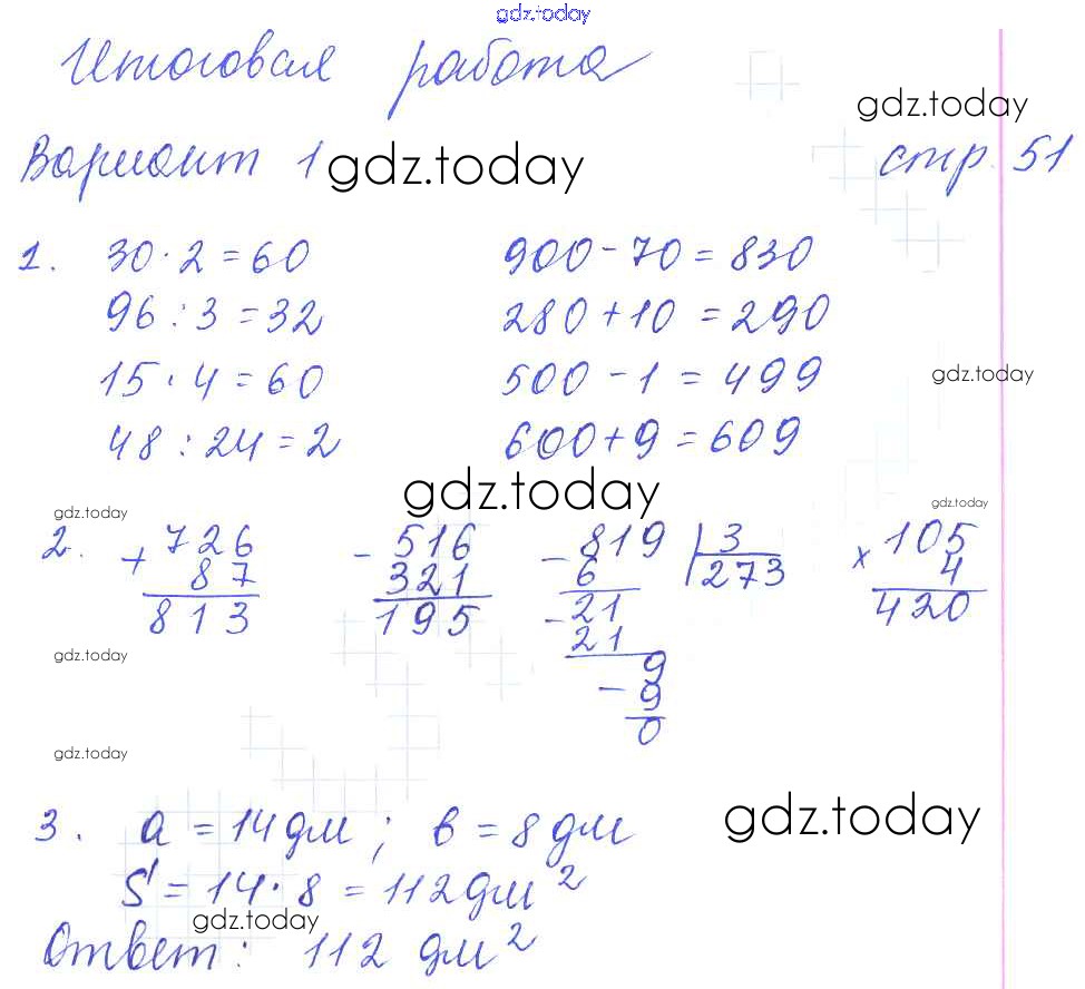 На страницах сайта gdz.today вы найдете учебный и вспомогательный материал, направленный на улучшения знаний школьной программы. ГДЗ - онлайн мир знаний Решение к части 2 (страницы) 51 Контрольным работам по Математике для 3 класса Рудницкая Экзамен УМК 2017