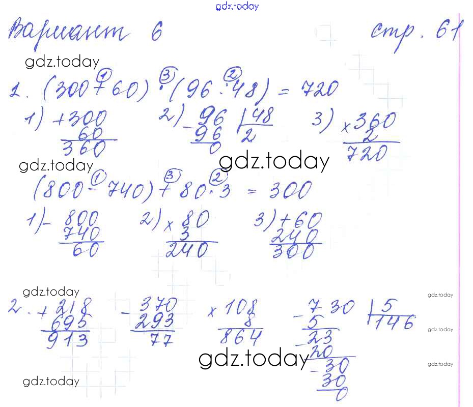 На страницах сайта gdz.today вы найдете учебный и вспомогательный материал, направленный на улучшения знаний школьной программы. ГДЗ - онлайн мир знаний Решение к части 2 (страницы) 61 Контрольным работам по Математике для 3 класса Рудницкая Экзамен УМК 2017