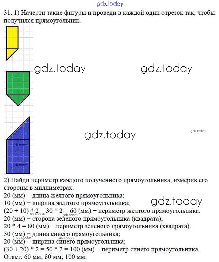 На страницах сайта gdz.today вы найдете учебный и вспомогательный материал, направленный на улучшения знаний школьной программы. ГДЗ - онлайн мир знаний Страница 104-108 Решение к части 1 31 Учебнику по Математике для 3 класса Моро, Бантова Просвещение Школа России 2015
