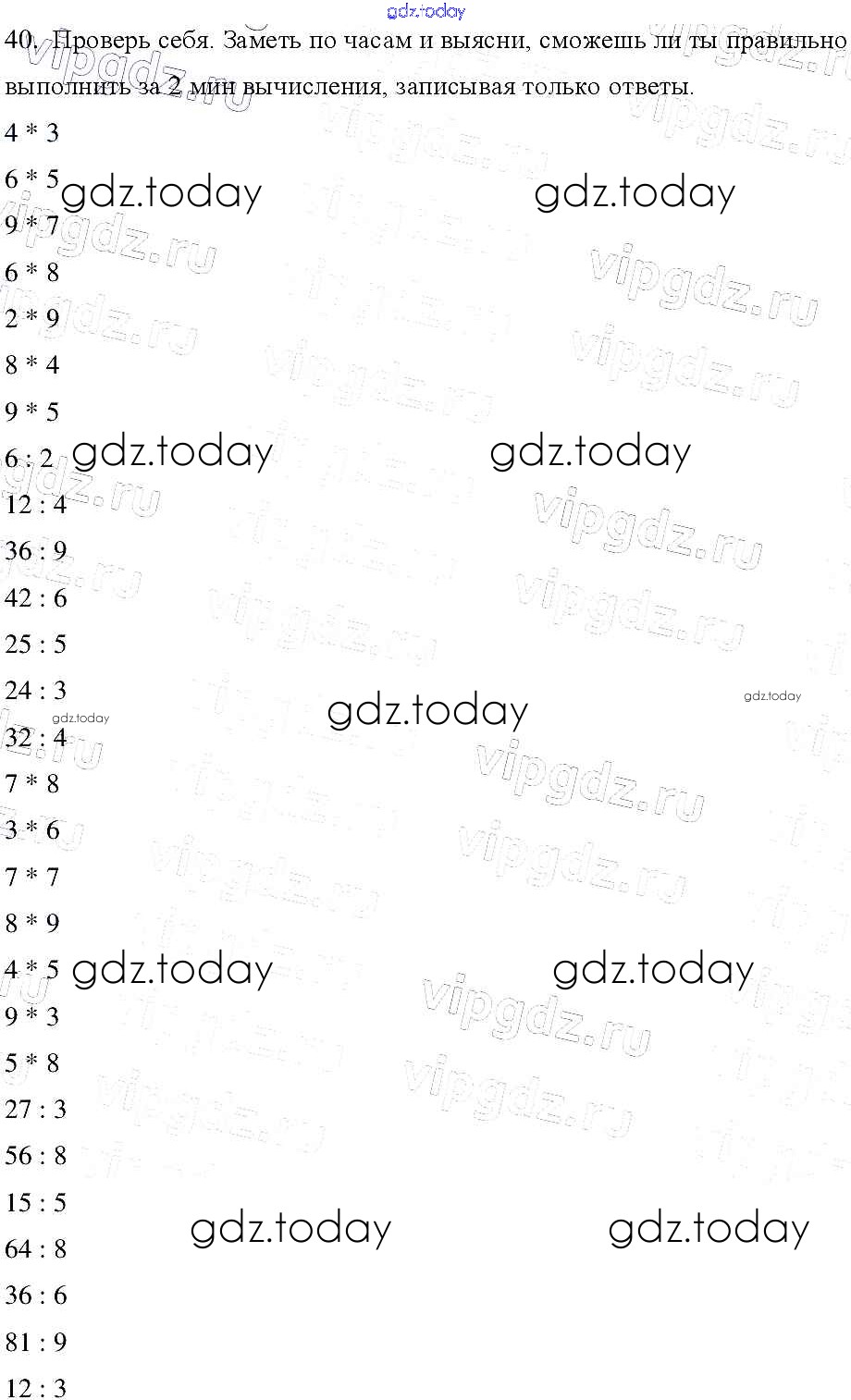 На страницах сайта gdz.today вы найдете учебный и вспомогательный материал, направленный на улучшения знаний школьной программы. ГДЗ - онлайн мир знаний Страница 104-108 Решение к части 1 40 Учебнику по Математике для 3 класса Моро, Бантова Просвещение Школа России 2015