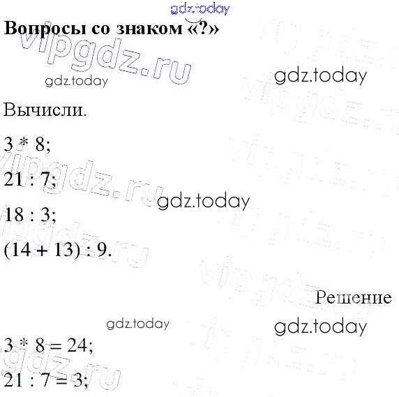 На страницах сайта gdz.today вы найдете учебный и вспомогательный материал, направленный на улучшения знаний школьной программы. ГДЗ - онлайн мир знаний Страница 21 Решение к части 1 задание внизу страницы Учебнику по Математике для 3 класса Моро, Бантова Просвещение Школа России 2015