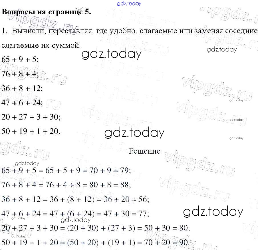 На страницах сайта gdz.today вы найдете учебный и вспомогательный материал, направленный на улучшения знаний школьной программы. ГДЗ - онлайн мир знаний Страница 5 Решение к части 1 1 Учебнику по Математике для 3 класса Моро, Бантова Просвещение Школа России 2015