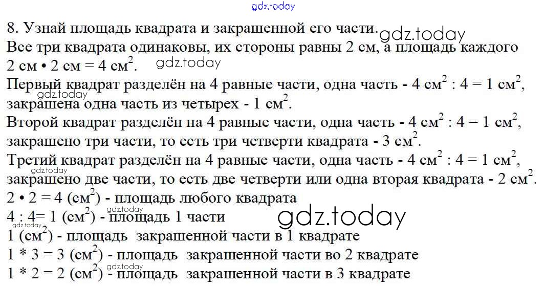 На страницах сайта gdz.today вы найдете учебный и вспомогательный материал, направленный на улучшения знаний школьной программы. ГДЗ - онлайн мир знаний Страница 20 Решение к части 2 8 Учебнику по Математике для 3 класса Моро, Бантова Просвещение Школа России 2015