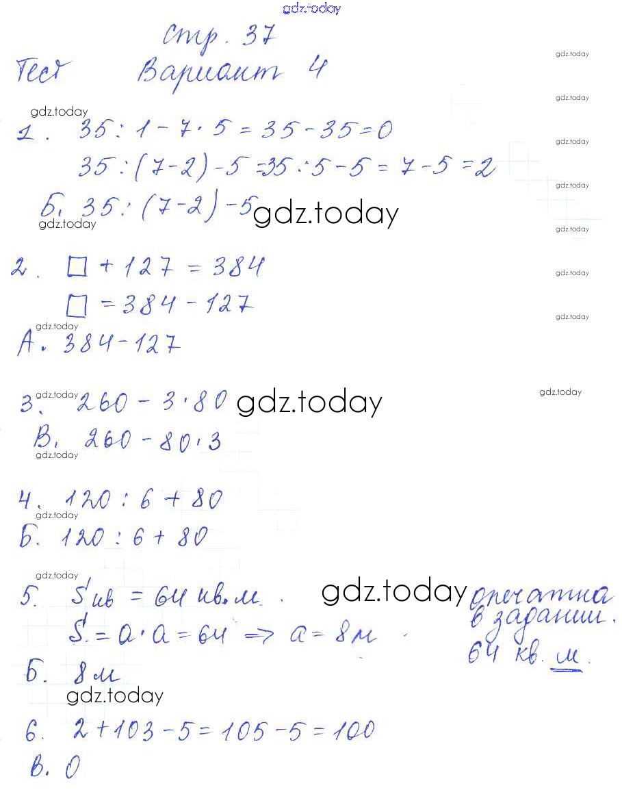 На страницах сайта gdz.today вы найдете учебный и вспомогательный материал, направленный на улучшения знаний школьной программы. ГДЗ - онлайн мир знаний Страницы (решение) 37 Тестам и самостоятельным работам для текущего контроля по Математике для 3 класса Нефедова Аст/Астрель Планета знаний 2017