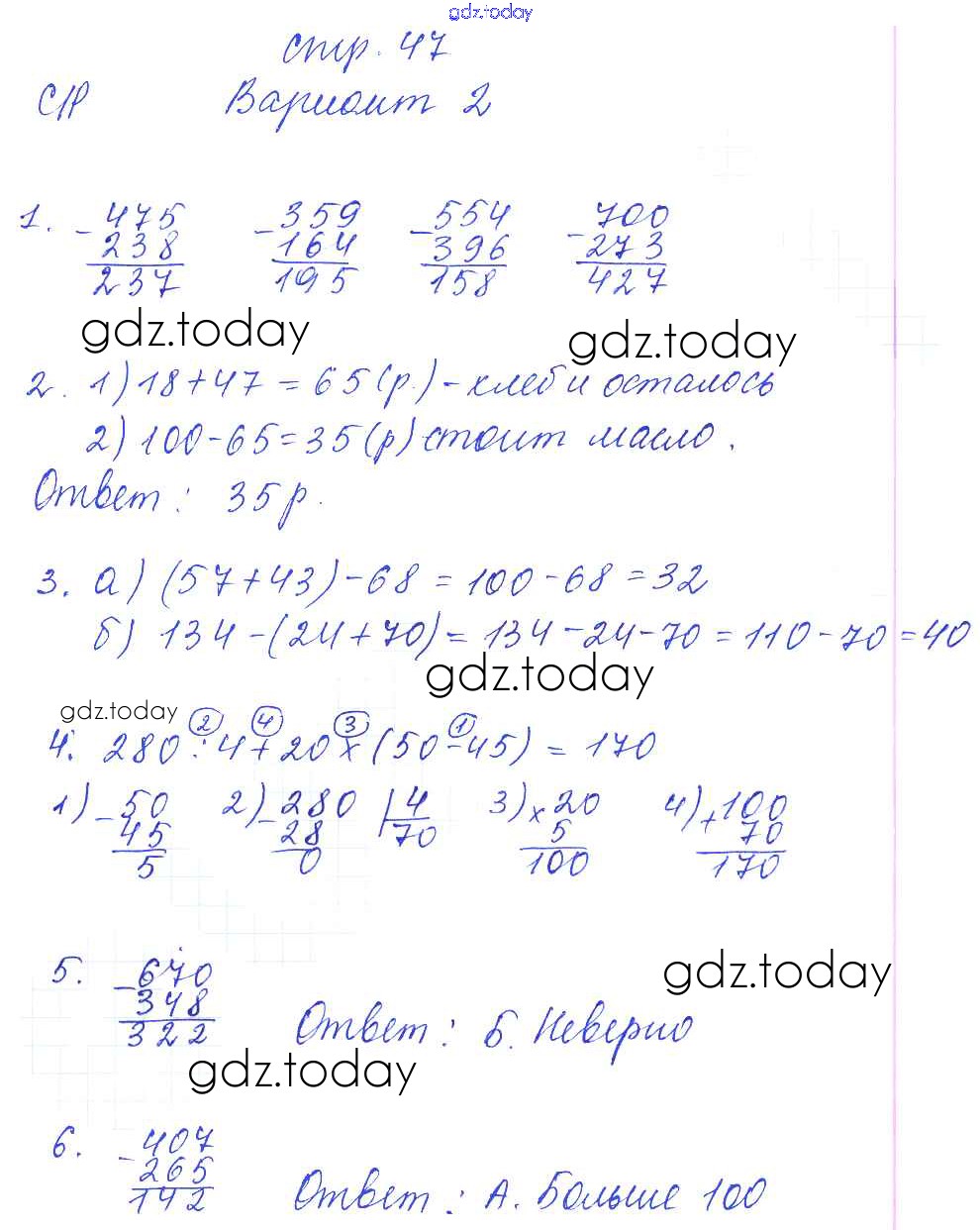 На страницах сайта gdz.today вы найдете учебный и вспомогательный материал, направленный на улучшения знаний школьной программы. ГДЗ - онлайн мир знаний Страницы (решение) 47 Тестам и самостоятельным работам для текущего контроля по Математике для 3 класса Нефедова Аст/Астрель Планета знаний 2017