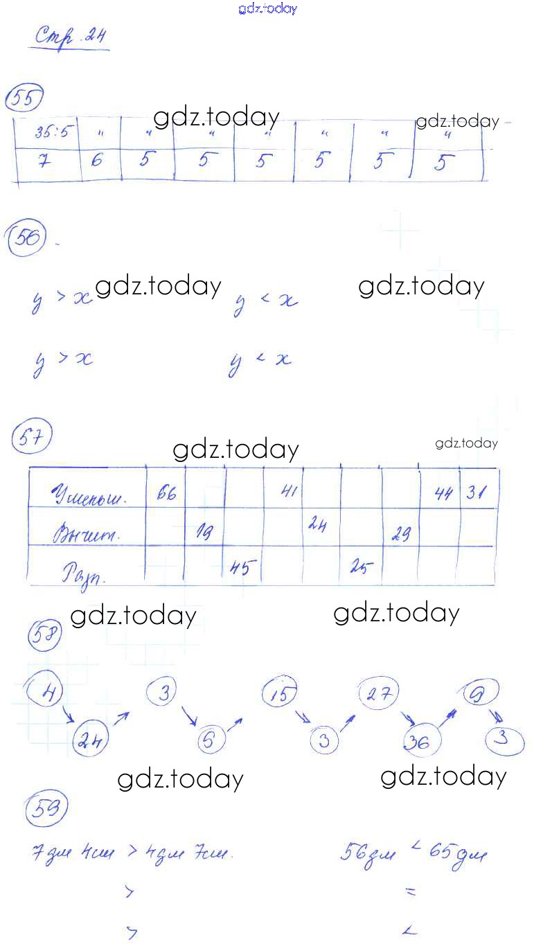 На страницах сайта gdz.today вы найдете учебный и вспомогательный материал, направленный на улучшения знаний школьной программы. ГДЗ - онлайн мир знаний Решение к части 1 (страницы) 24 Рабочей тетради по Математике для 3 класса Кремнева Экзамен УМК 2018