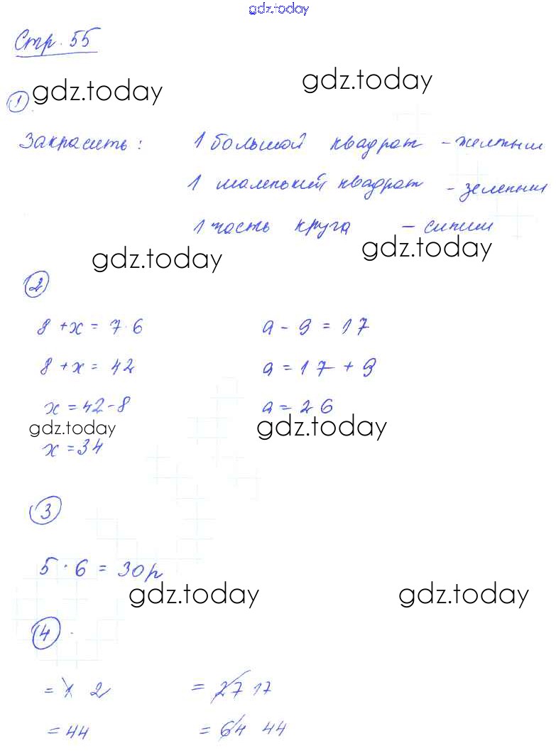 На страницах сайта gdz.today вы найдете учебный и вспомогательный материал, направленный на улучшения знаний школьной программы. ГДЗ - онлайн мир знаний Решение к части 1 (страницы) 55 Рабочей тетради по Математике для 3 класса Кремнева Экзамен УМК 2018