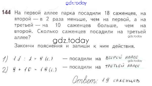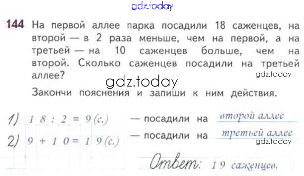 Ответы к Страница 8-76 (Умножение и деление) Решение к части 1 144 Рабочей тетради по Математике для 3 класса Моро, Волкова Просвещение Школа России 2016