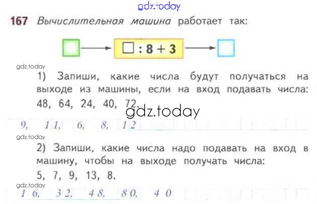 На страницах сайта gdz.today вы найдете учебный и вспомогательный материал, направленный на улучшения знаний школьной программы. ГДЗ - онлайн мир знаний Страница 8-76 (Умножение и деление) Решение к части 1 167 Рабочей тетради по Математике для 3 класса Моро, Волкова Просвещение Школа России 2016