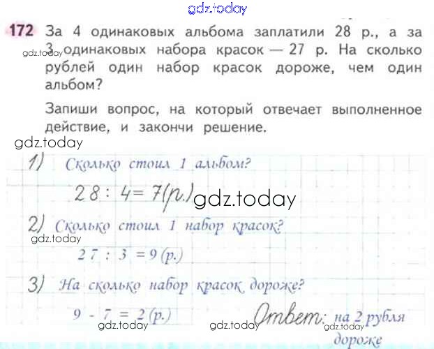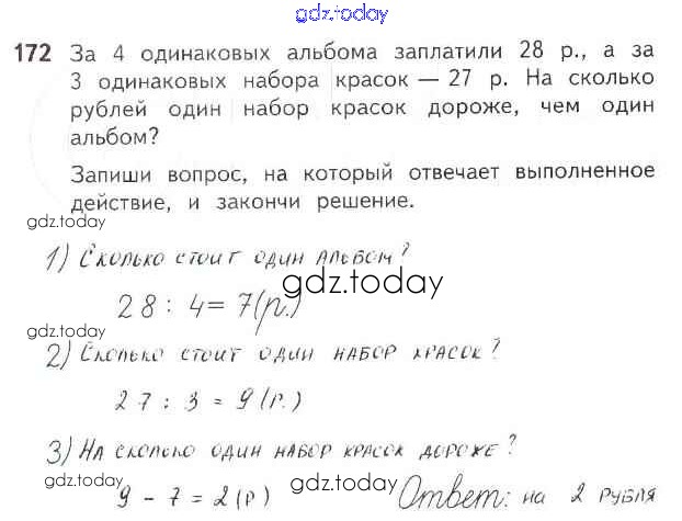 Ответы к Страница 8-76 (Умножение и деление) Решение к части 1 172 Рабочей тетради по Математике для 3 класса Моро, Волкова Просвещение Школа России 2016
