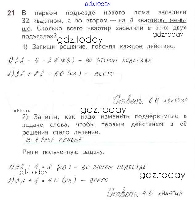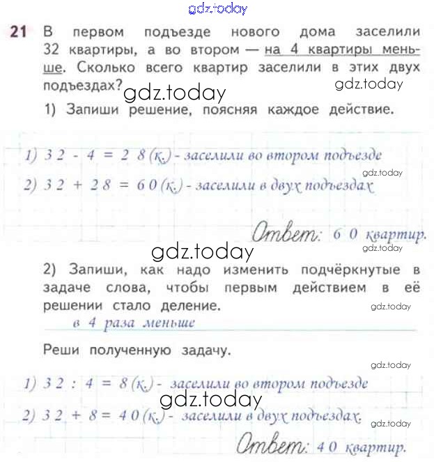 На страницах сайта gdz.today вы найдете учебный и вспомогательный материал, направленный на улучшения знаний школьной программы. ГДЗ - онлайн мир знаний Страница 3-38 (Внетабличное умножение и деление) Решение к части 2 21 Рабочей тетради по Математике для 3 класса Моро, Волкова Просвещение Школа России 2016
