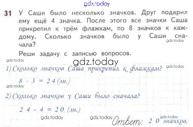 На страницах сайта gdz.today вы найдете учебный и вспомогательный материал, направленный на улучшения знаний школьной программы. ГДЗ - онлайн мир знаний Страница 3-38 (Внетабличное умножение и деление) Решение к части 2 31 Рабочей тетради по Математике для 3 класса Моро, Волкова Просвещение Школа России 2016