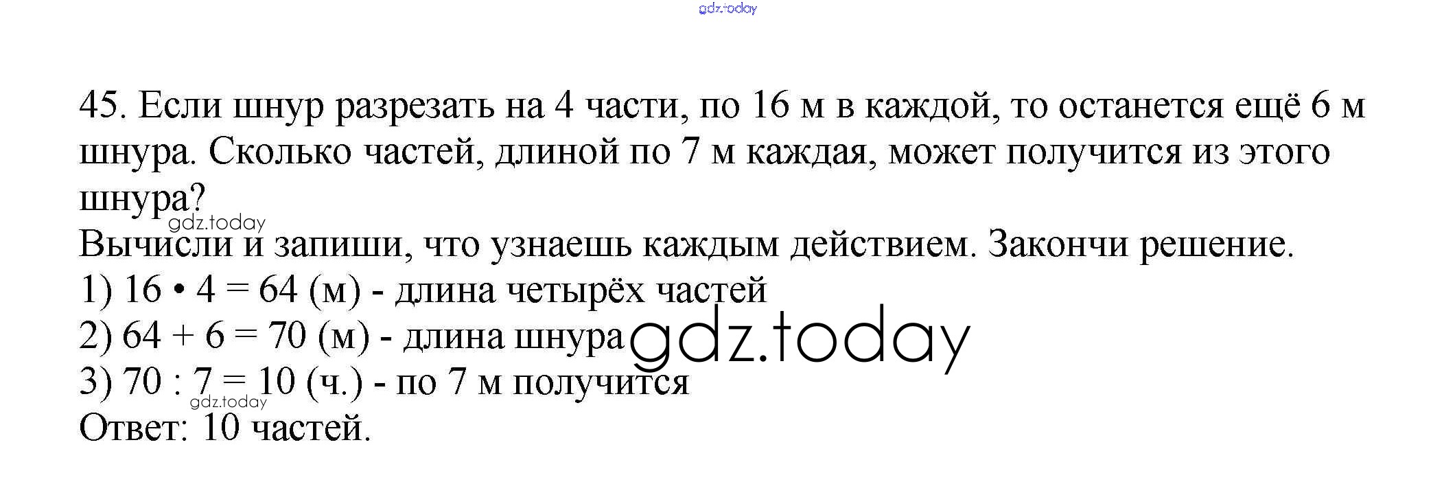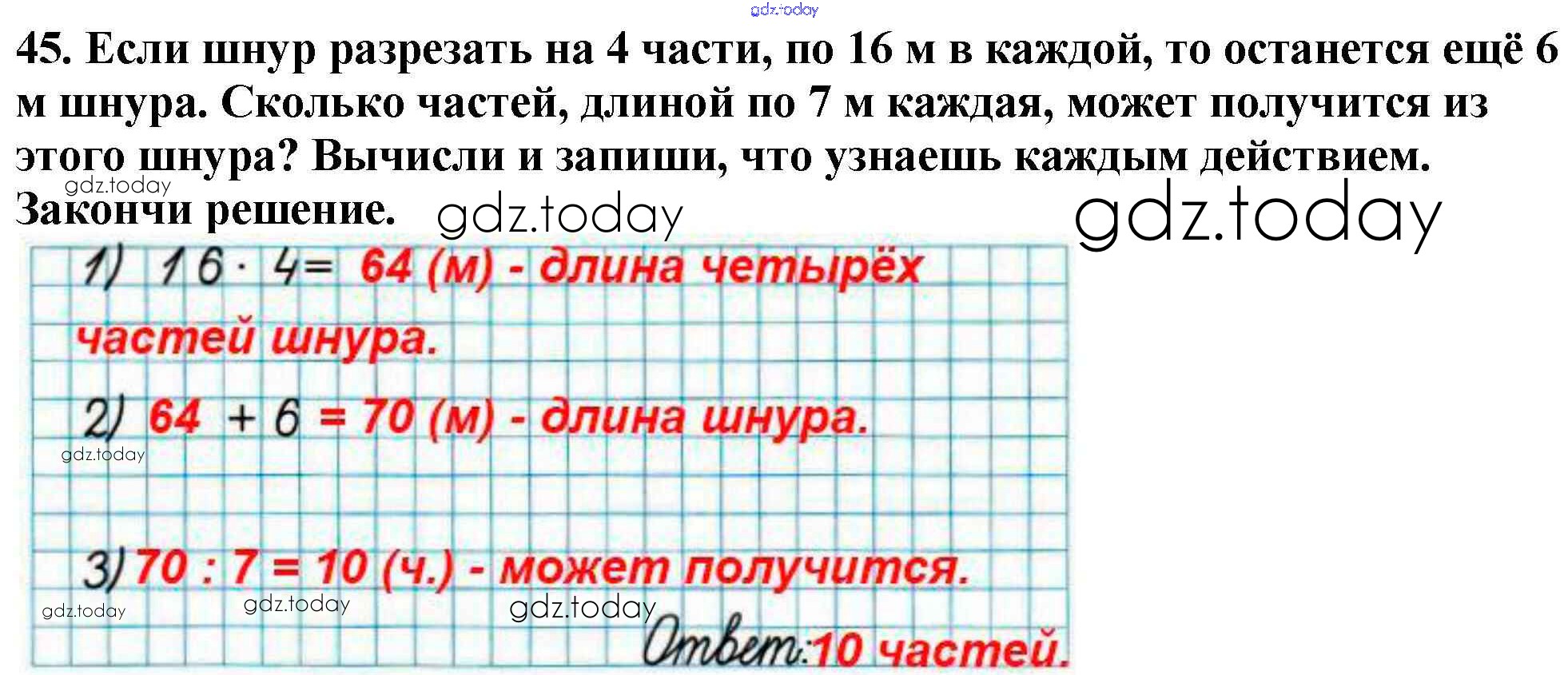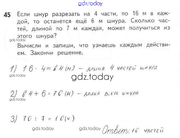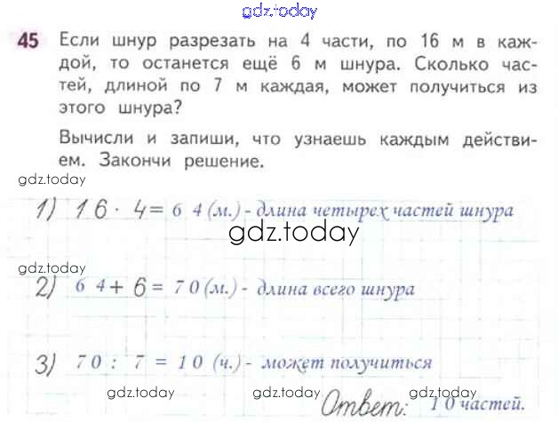 На страницах сайта gdz.today вы найдете учебный и вспомогательный материал, направленный на улучшения знаний школьной программы. ГДЗ - онлайн мир знаний Страница 3-38 (Внетабличное умножение и деление) Решение к части 2 45 Рабочей тетради по Математике для 3 класса Моро, Волкова Просвещение Школа России 2016