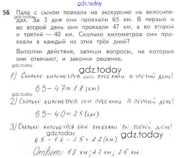 На страницах сайта gdz.today вы найдете учебный и вспомогательный материал, направленный на улучшения знаний школьной программы. ГДЗ - онлайн мир знаний Страница 3-38 (Внетабличное умножение и деление) Решение к части 2 56 Рабочей тетради по Математике для 3 класса Моро, Волкова Просвещение Школа России 2016