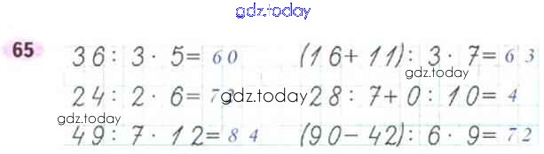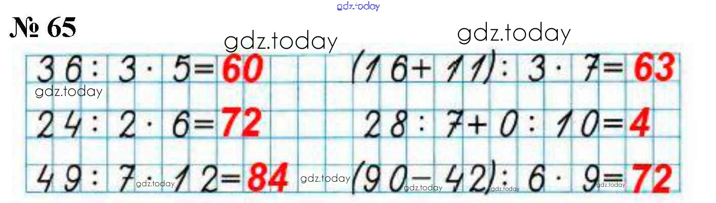 На страницах сайта gdz.today вы найдете учебный и вспомогательный материал, направленный на улучшения знаний школьной программы. ГДЗ - онлайн мир знаний Страница 3-38 (Внетабличное умножение и деление) Решение к части 2 65 Рабочей тетради по Математике для 3 класса Моро, Волкова Просвещение Школа России 2016