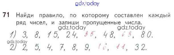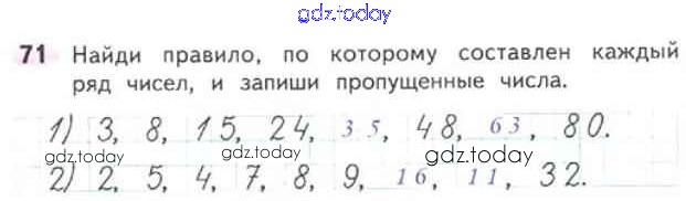 На страницах сайта gdz.today вы найдете учебный и вспомогательный материал, направленный на улучшения знаний школьной программы. ГДЗ - онлайн мир знаний Страница 3-38 (Внетабличное умножение и деление) Решение к части 2 71 Рабочей тетради по Математике для 3 класса Моро, Волкова Просвещение Школа России 2016