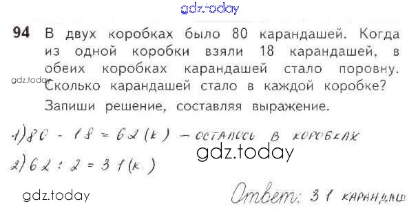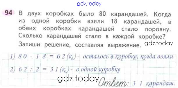 На страницах сайта gdz.today вы найдете учебный и вспомогательный материал, направленный на улучшения знаний школьной программы. ГДЗ - онлайн мир знаний Страница 3-38 (Внетабличное умножение и деление) Решение к части 2 94 Рабочей тетради по Математике для 3 класса Моро, Волкова Просвещение Школа России 2016