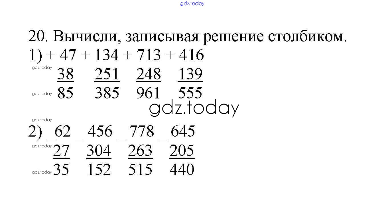 Ответы к Страница 47-58 (Сложение и вычитание) Решение к части 2 20 Рабочей тетради по Математике для 3 класса Моро, Волкова Просвещение Школа России 2016