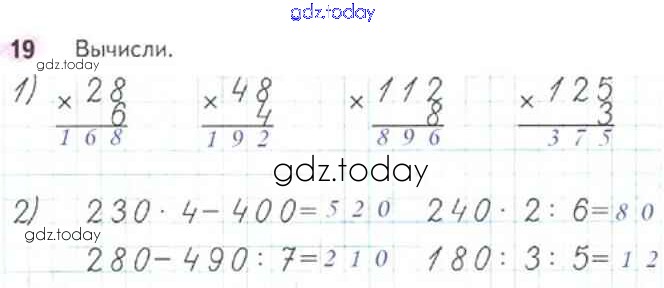 На страницах сайта gdz.today вы найдете учебный и вспомогательный материал, направленный на улучшения знаний школьной программы. ГДЗ - онлайн мир знаний Страница 59-75 (Умножение и деление) Решение к части 2 19 Рабочей тетради по Математике для 3 класса Моро, Волкова Просвещение Школа России 2016