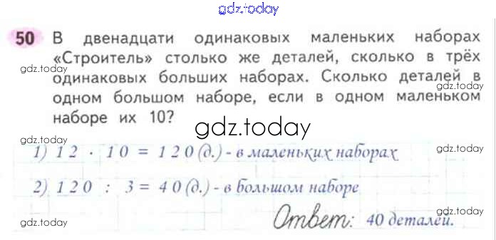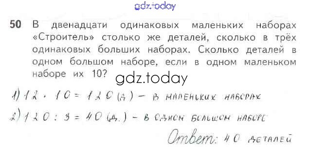 Ответы к Страница 59-75 (Умножение и деление) Решение к части 2 50 Рабочей тетради по Математике для 3 класса Моро, Волкова Просвещение Школа России 2016
