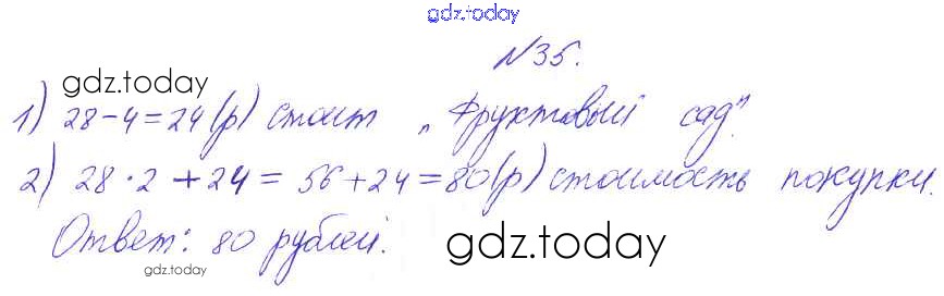 На страницах сайта gdz.today вы найдете учебный и вспомогательный материал, направленный на улучшения знаний школьной программы. ГДЗ - онлайн мир знаний Нахождение однозначного частного Решение к части 2 (упражнения) 35 Учебнику по Математике для 3 класса Рудницкая, Юдачева Вентана-граф Начальная школа XXI века 2016