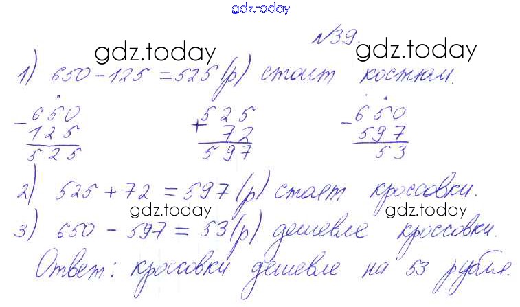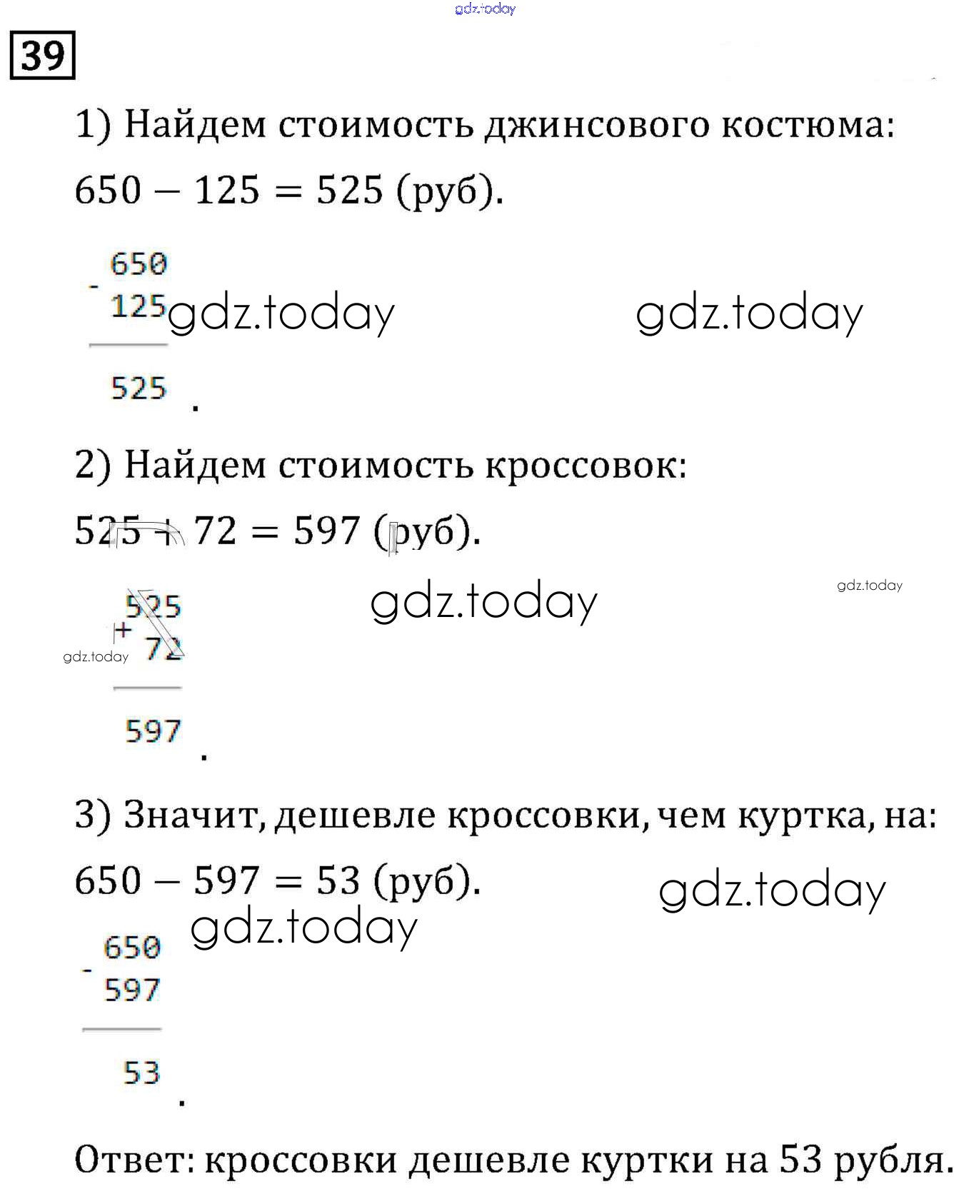На страницах сайта gdz.today вы найдете учебный и вспомогательный материал, направленный на улучшения знаний школьной программы. ГДЗ - онлайн мир знаний Нахождение однозначного частного Решение к части 2 (упражнения) 39 Учебнику по Математике для 3 класса Рудницкая, Юдачева Вентана-граф Начальная школа XXI века 2016