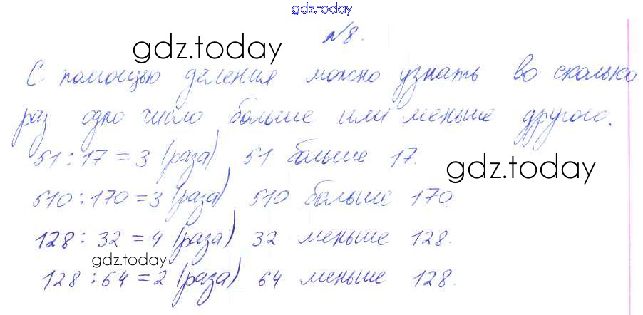 На страницах сайта gdz.today вы найдете учебный и вспомогательный материал, направленный на улучшения знаний школьной программы. ГДЗ - онлайн мир знаний Нахождение однозначного частного Решение к части 2 (упражнения) 8 Учебнику по Математике для 3 класса Рудницкая, Юдачева Вентана-граф Начальная школа XXI века 2016