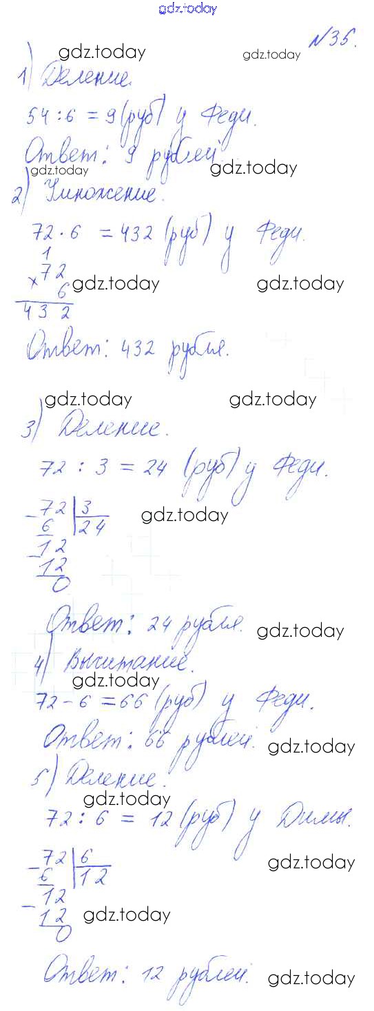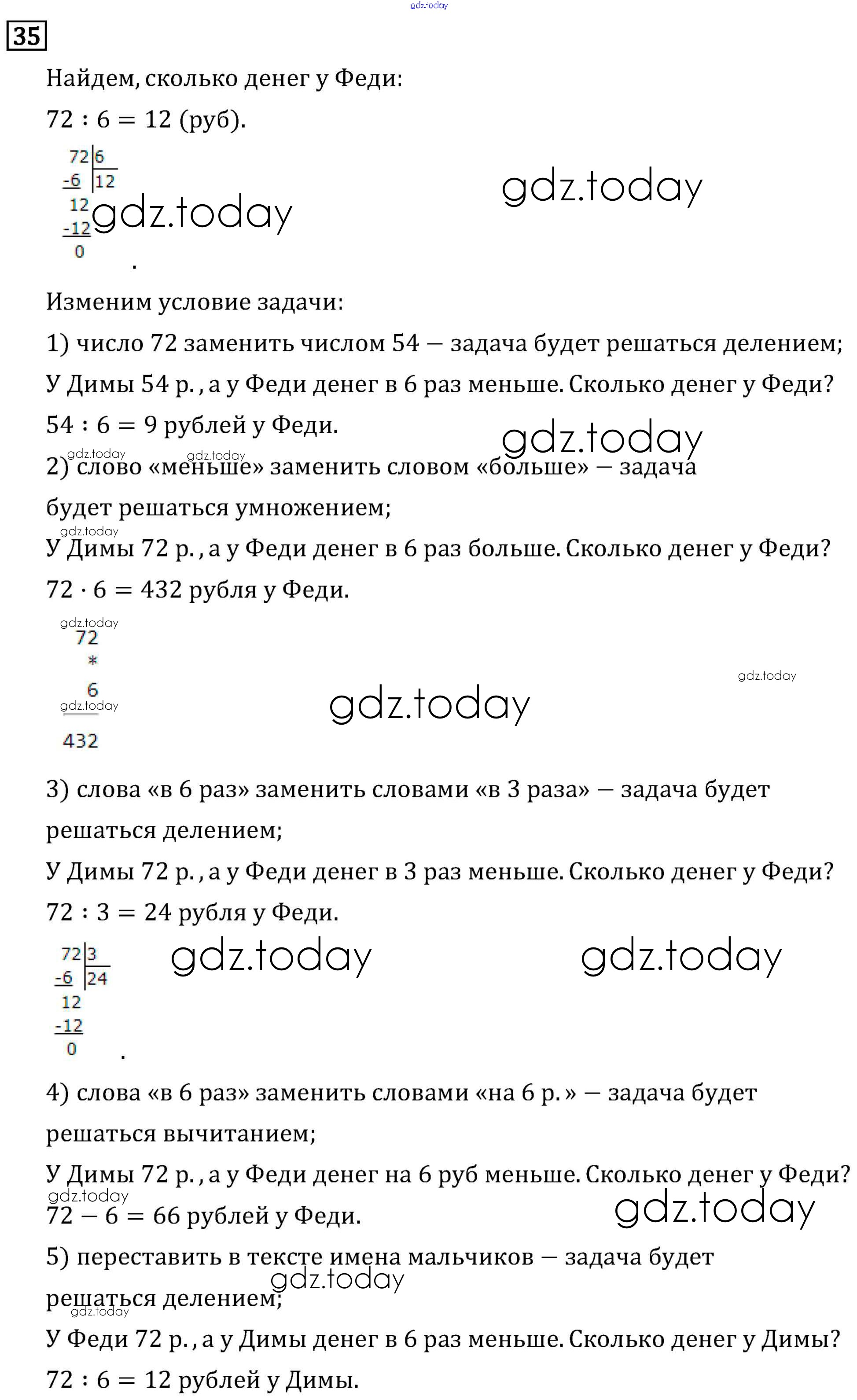 На страницах сайта gdz.today вы найдете учебный и вспомогательный материал, направленный на улучшения знаний школьной программы. ГДЗ - онлайн мир знаний Деление на двузначное число Решение к части 2 (упражнения) 35 Учебнику по Математике для 3 класса Рудницкая, Юдачева Вентана-граф Начальная школа XXI века 2016