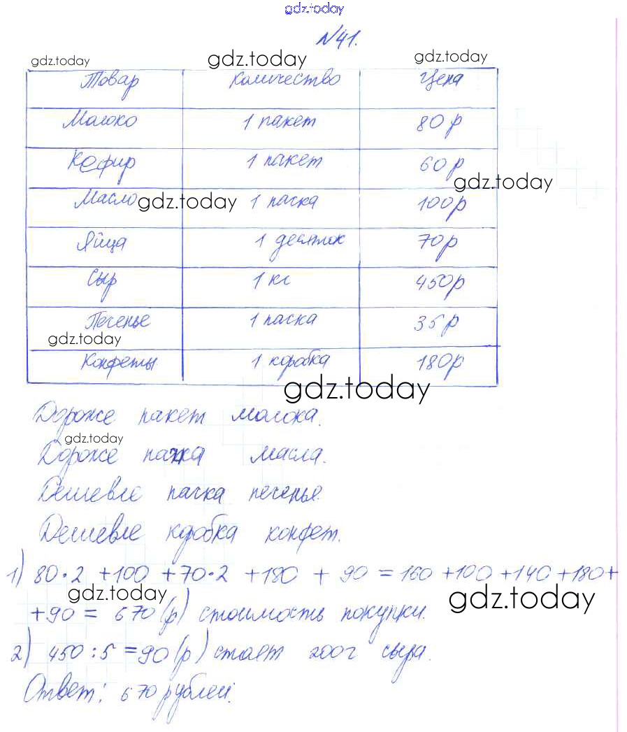 Ответы к Деление на двузначное число Решение к части 2 (упражнения) 41 Учебнику по Математике для 3 класса Рудницкая, Юдачева Вентана-граф Начальная школа XXI века 2016