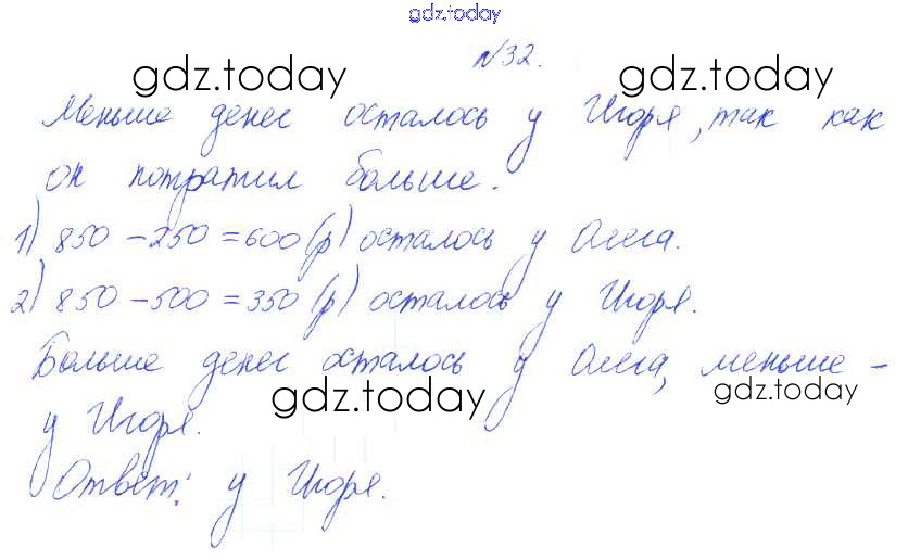 Ответы к Деление на 10 и на 100 Решение к части 2 (упражнения) 32 Учебнику по Математике для 3 класса Рудницкая, Юдачева Вентана-граф Начальная школа XXI века 2016