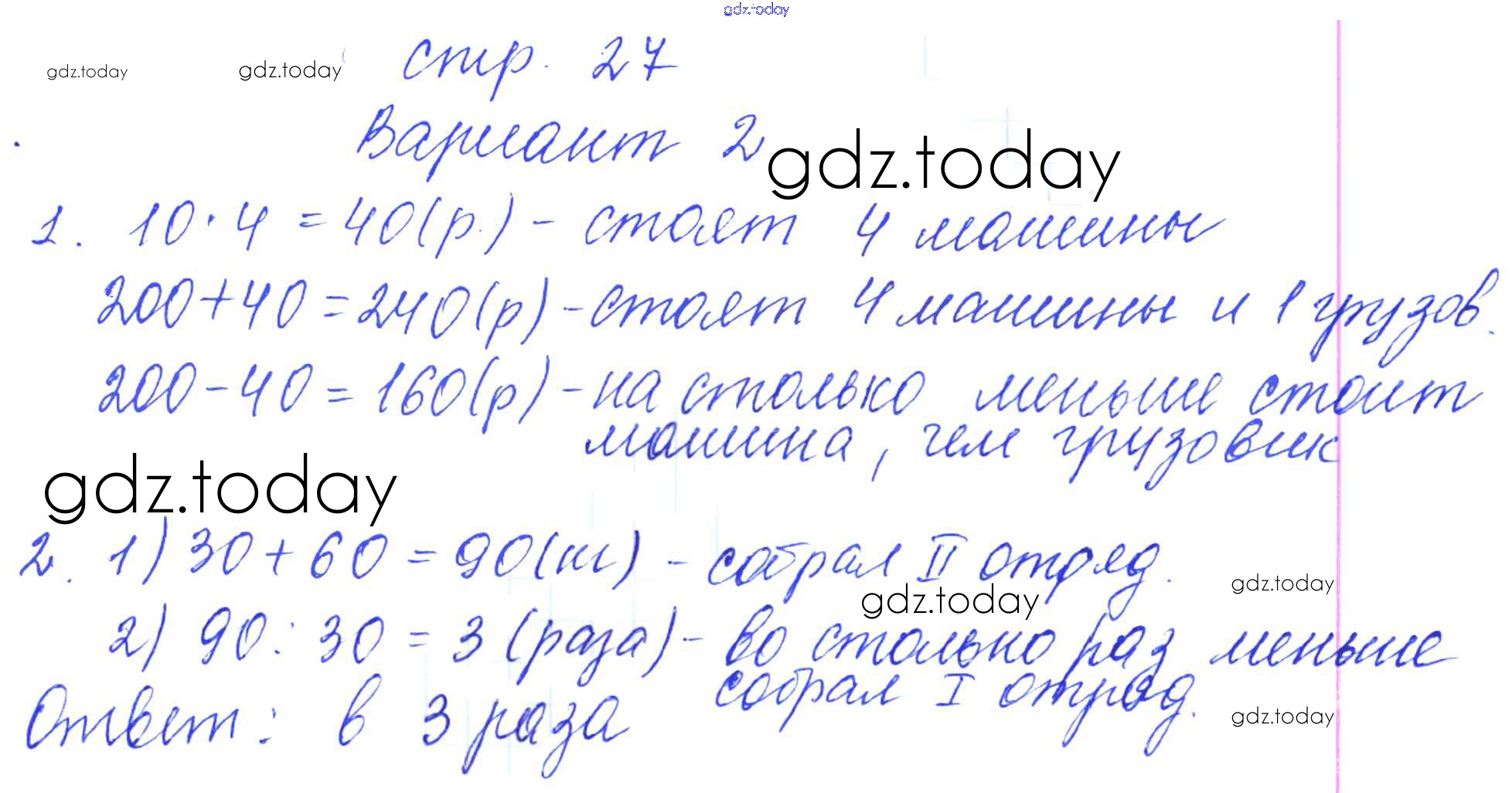 На страницах сайта gdz.today вы найдете учебный и вспомогательный материал, направленный на улучшения знаний школьной программы. ГДЗ - онлайн мир знаний Решение к части 2 27 Самостоятельным работам по Математике для 3 класса Самсонова Экзамен УМК 2016