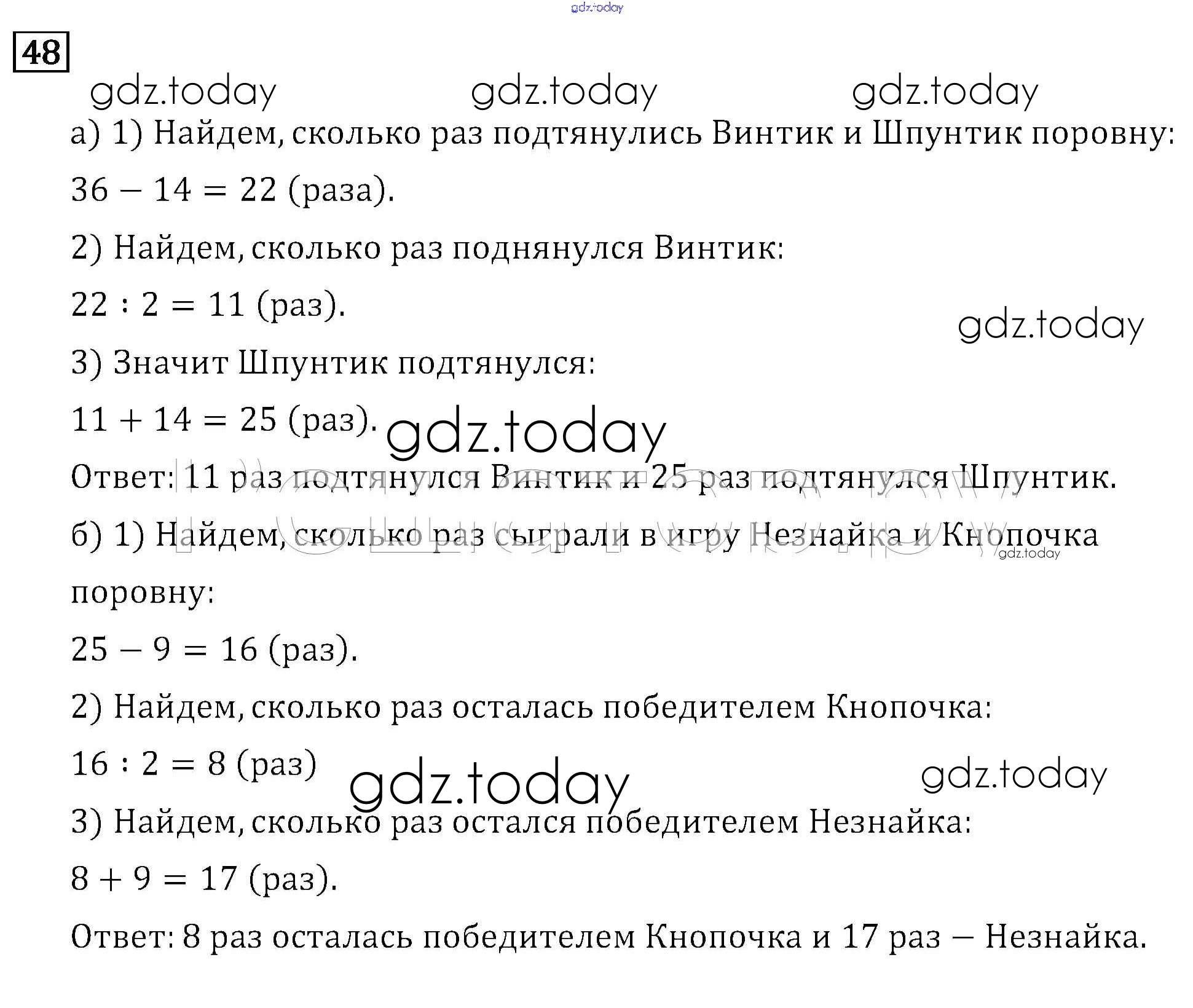 На страницах сайта gdz.today вы найдете учебный и вспомогательный материал, направленный на улучшения знаний школьной программы. ГДЗ - онлайн мир знаний Решение к задачам на повторение 48 Учебнику по Математике для 3 класса Петерсон Бином Учусь учиться 2017