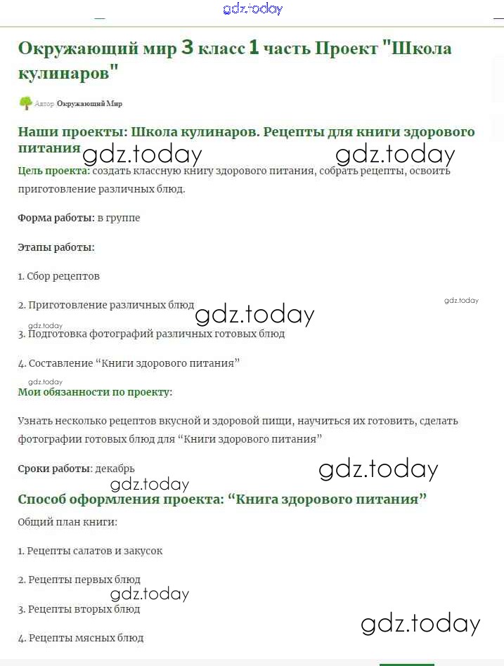 На страницах сайта gdz.today вы найдете учебный и вспомогательный материал, направленный на улучшения знаний школьной программы. ГДЗ - онлайн мир знаний Школа кулинаров (стр. 142) Темы Мы и наше здоровье 142 Учебнику по Окружающему миру для 3 класса Плешаков Просвещение Школа России 2017