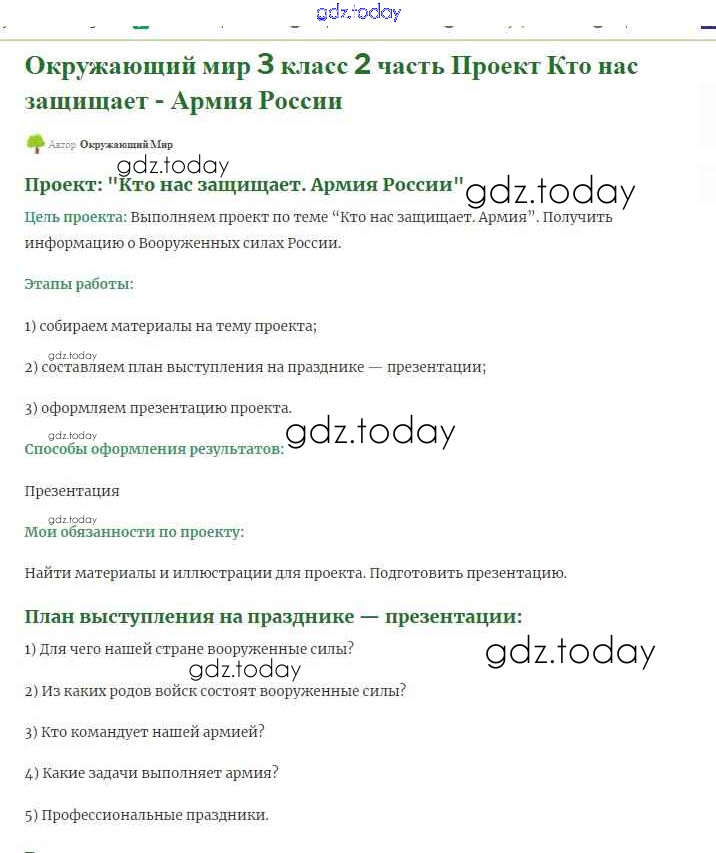 На страницах сайта gdz.today вы найдете учебный и вспомогательный материал, направленный на улучшения знаний школьной программы. ГДЗ - онлайн мир знаний Кто нас защищает (стр.18) Темы Наша безопасность 1 Учебнику по Окружающему миру для 3 класса Плешаков Просвещение Школа России 2017