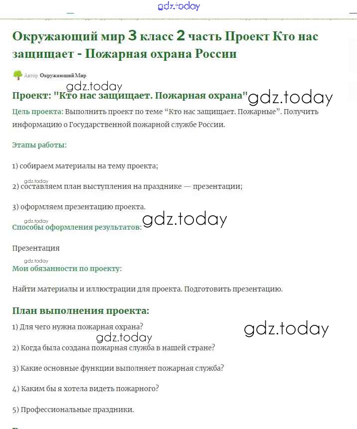 На страницах сайта gdz.today вы найдете учебный и вспомогательный материал, направленный на улучшения знаний школьной программы. ГДЗ - онлайн мир знаний Кто нас защищает (стр.18) Темы Наша безопасность 3 Учебнику по Окружающему миру для 3 класса Плешаков Просвещение Школа России 2017