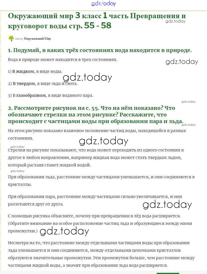 На страницах сайта gdz.today вы найдете учебный и вспомогательный материал, направленный на улучшения знаний школьной программы. ГДЗ - онлайн мир знаний Эта удивительная природа Решение к части 1 55 Учебнику по Окружающему миру для 3 класса Плешаков Просвещение Школа России 2017