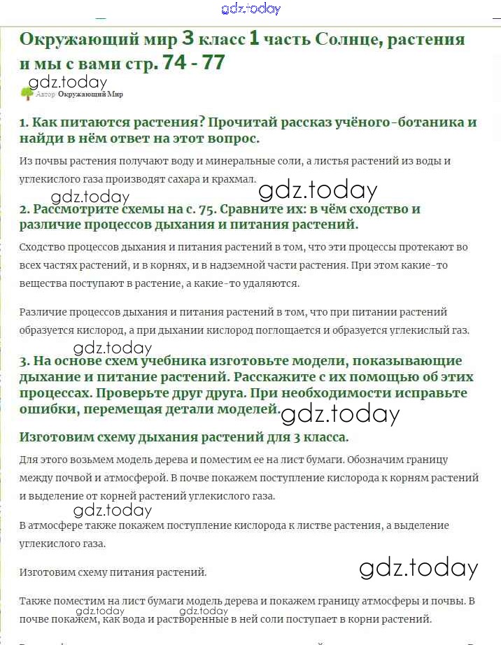 На страницах сайта gdz.today вы найдете учебный и вспомогательный материал, направленный на улучшения знаний школьной программы. ГДЗ - онлайн мир знаний Эта удивительная природа Решение к части 1 74 Учебнику по Окружающему миру для 3 класса Плешаков Просвещение Школа России 2017