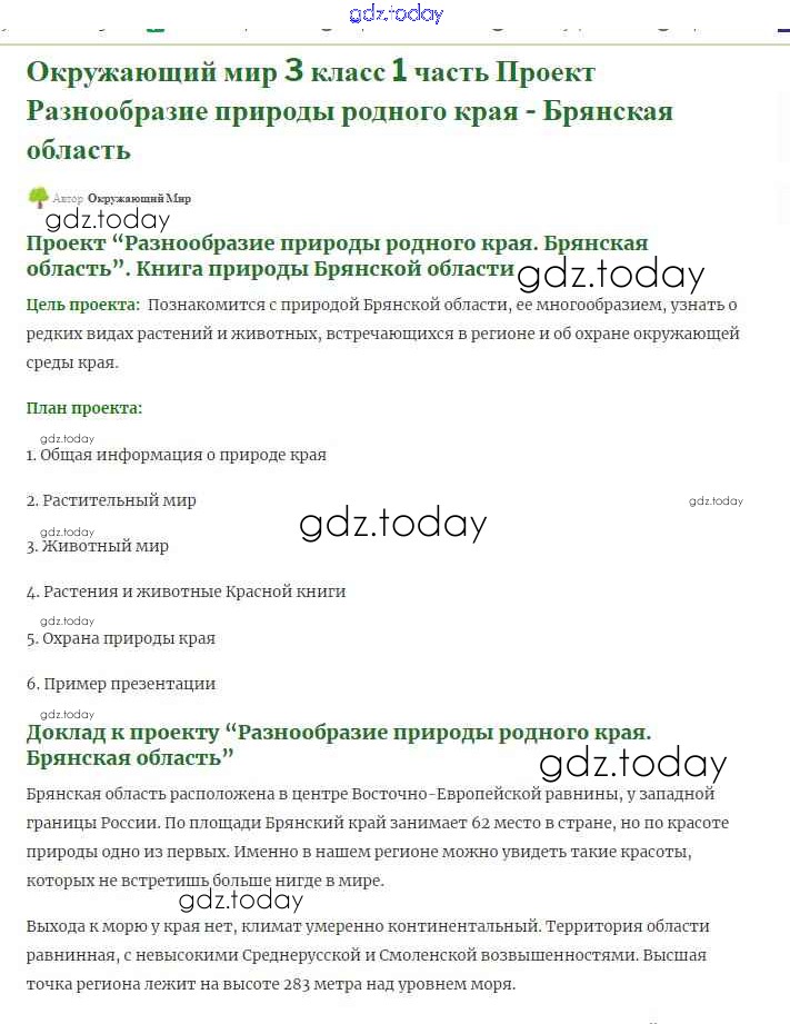 На страницах сайта gdz.today вы найдете учебный и вспомогательный материал, направленный на улучшения знаний школьной программы. ГДЗ - онлайн мир знаний Разнообразие природы родного края (стр. 98) Темы Эта удивительная природа 8 Учебнику по Окружающему миру для 3 класса Плешаков Просвещение Школа России 2017