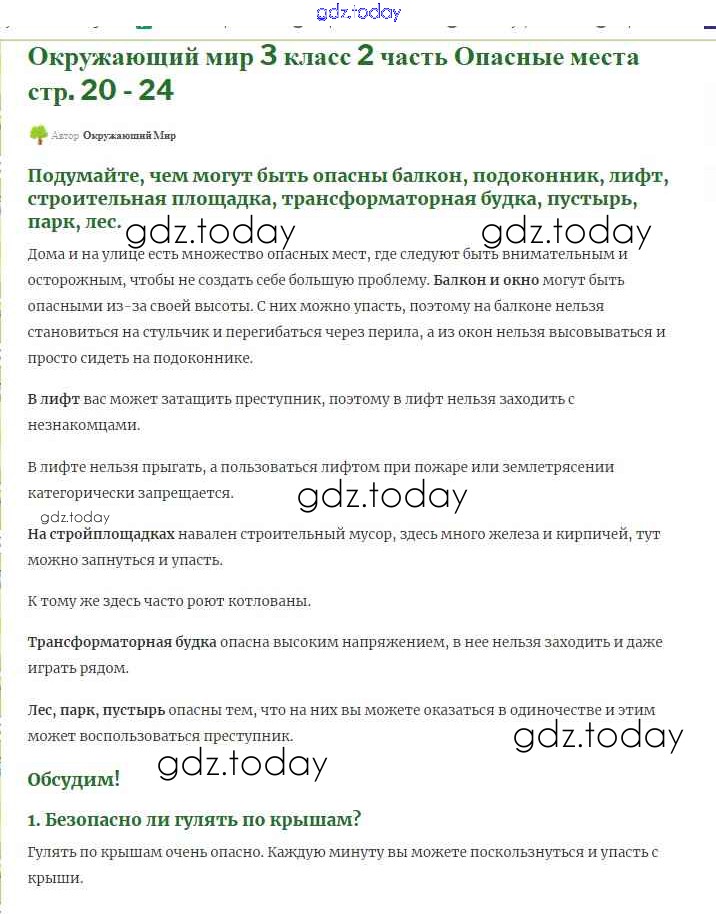 На страницах сайта gdz.today вы найдете учебный и вспомогательный материал, направленный на улучшения знаний школьной программы. ГДЗ - онлайн мир знаний Наша безопасность Решение к части 2 20 Учебнику по Окружающему миру для 3 класса Плешаков Просвещение Школа России 2017