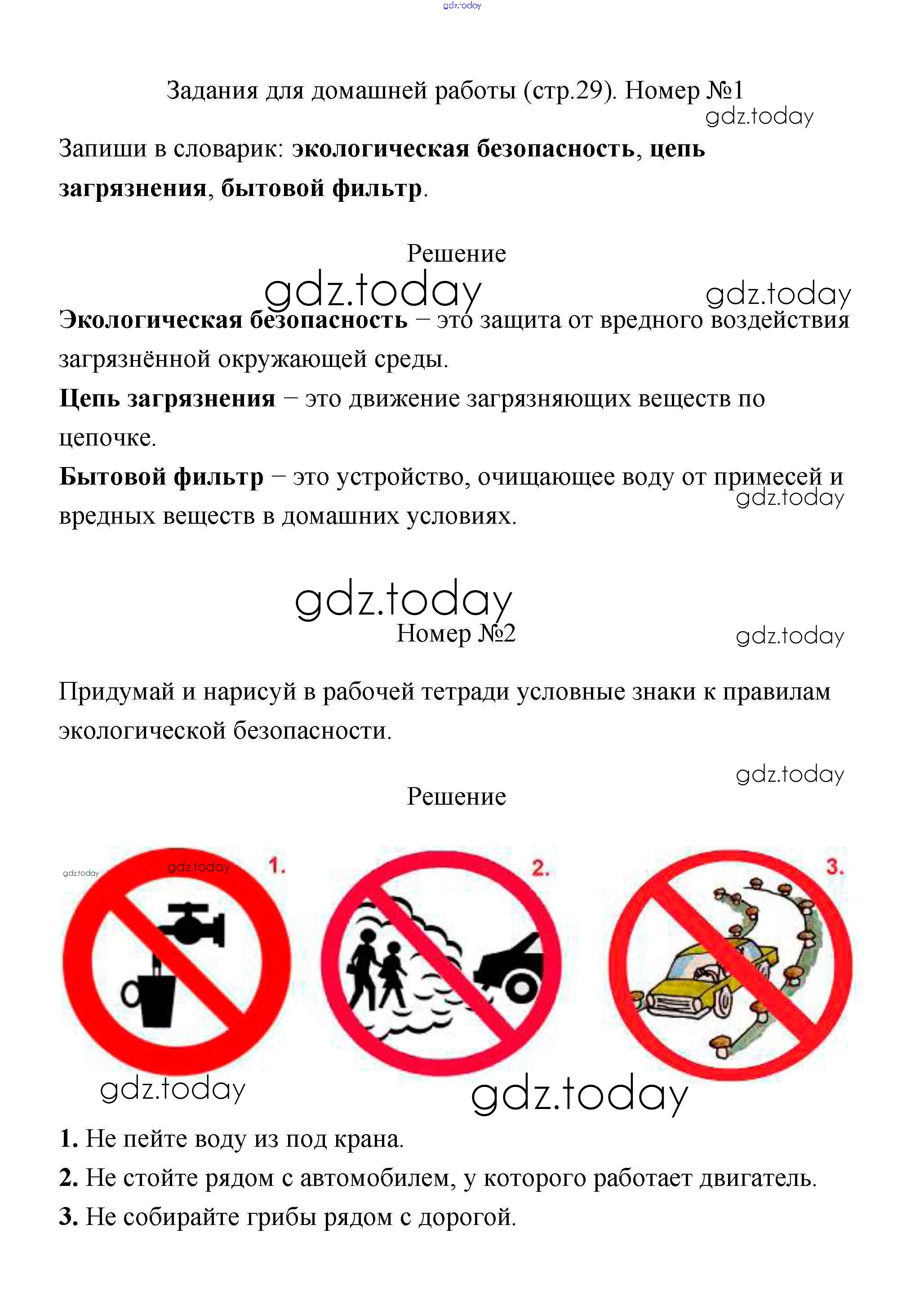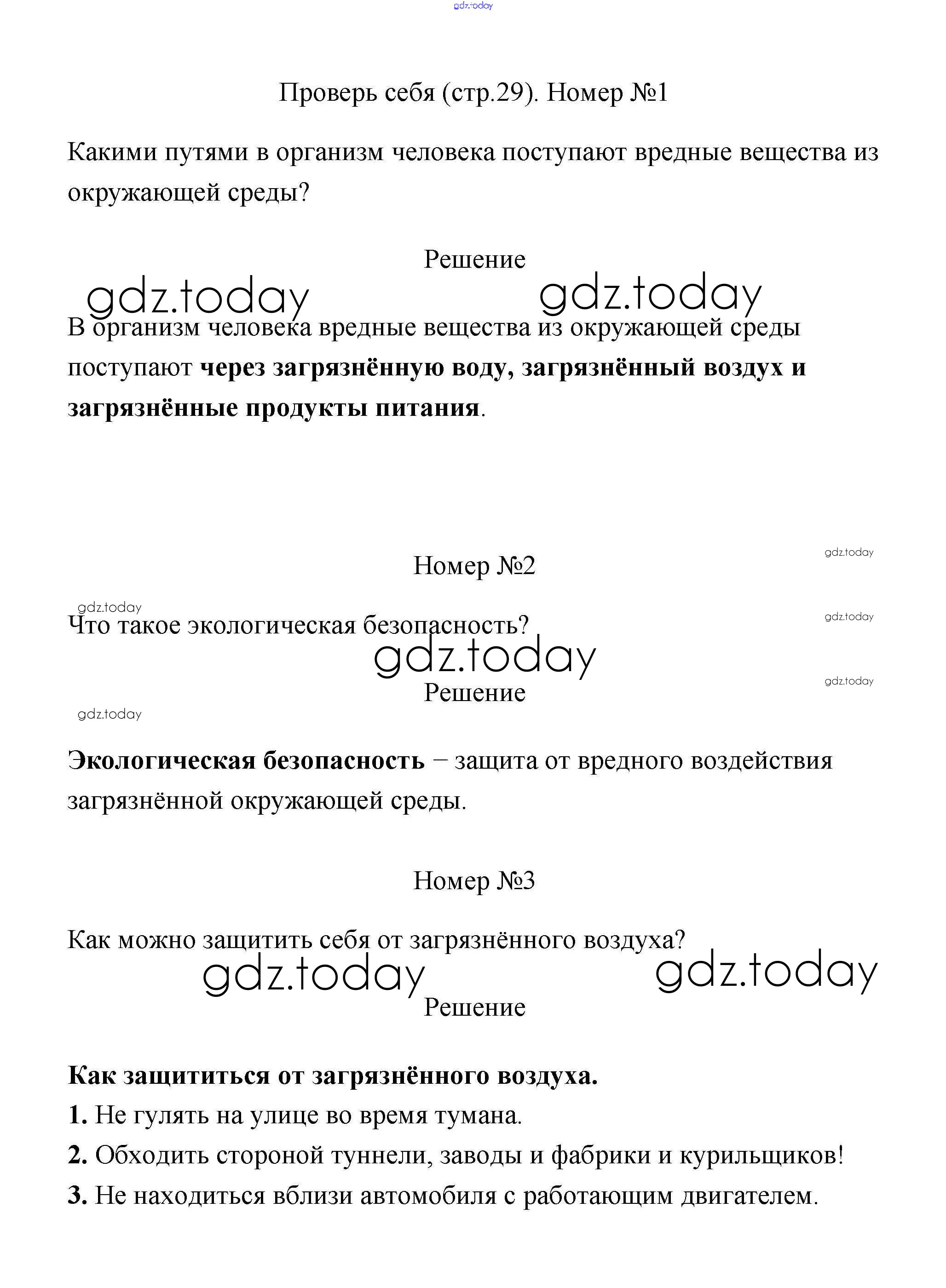 На страницах сайта gdz.today вы найдете учебный и вспомогательный материал, направленный на улучшения знаний школьной программы. ГДЗ - онлайн мир знаний Наша безопасность Решение к части 2 29 Учебнику по Окружающему миру для 3 класса Плешаков Просвещение Школа России 2017