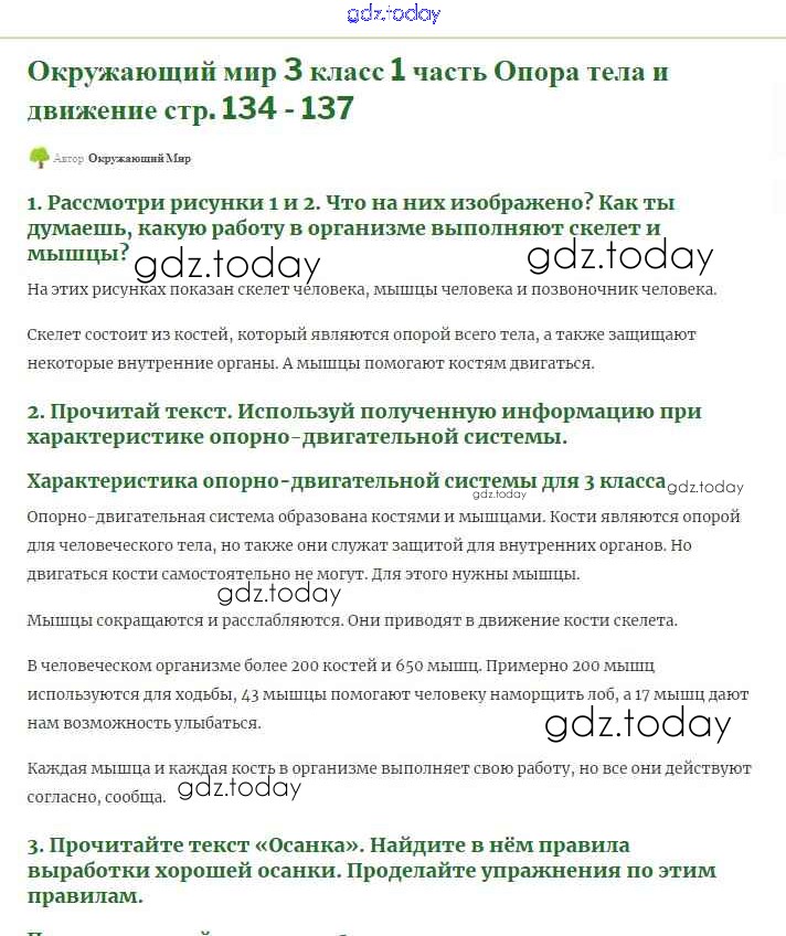 На страницах сайта gdz.today вы найдете учебный и вспомогательный материал, направленный на улучшения знаний школьной программы. ГДЗ - онлайн мир знаний Мы и наше здоровье Решение к части 1 134 Учебнику по Окружающему миру для 3 класса Плешаков Просвещение Школа России 2017