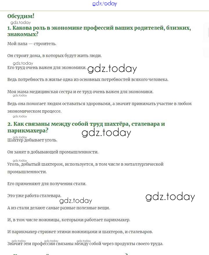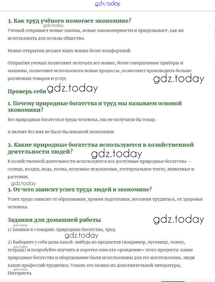 На страницах сайта gdz.today вы найдете учебный и вспомогательный материал, направленный на улучшения знаний школьной программы. ГДЗ - онлайн мир знаний Чему учит экономика Решение к части 2 42 Учебнику по Окружающему миру для 3 класса Плешаков Просвещение Школа России 2017