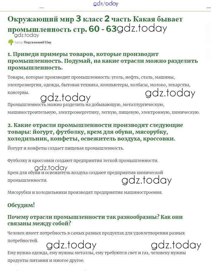 На страницах сайта gdz.today вы найдете учебный и вспомогательный материал, направленный на улучшения знаний школьной программы. ГДЗ - онлайн мир знаний Чему учит экономика Решение к части 2 60 Учебнику по Окружающему миру для 3 класса Плешаков Просвещение Школа России 2017
