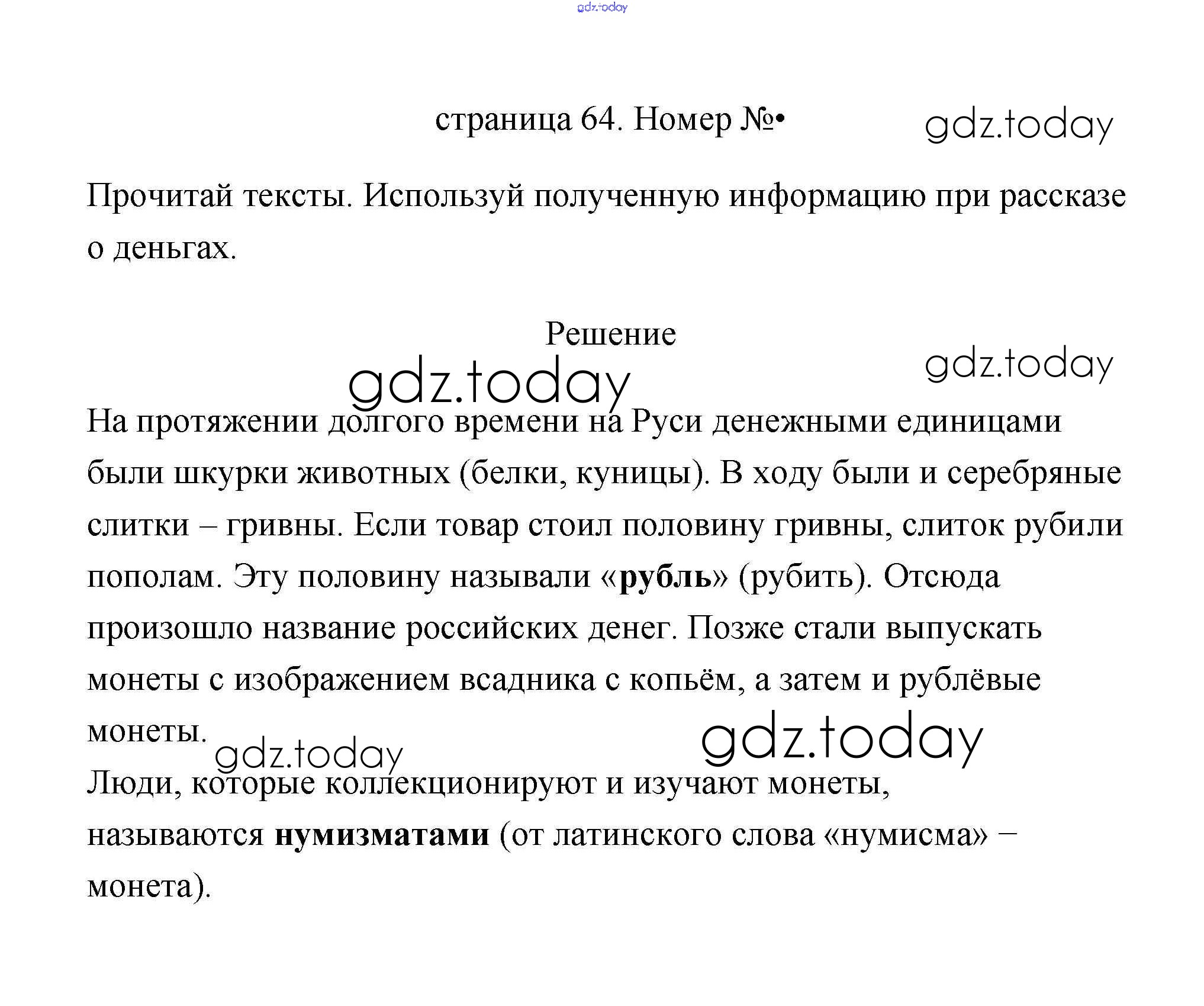 На страницах сайта gdz.today вы найдете учебный и вспомогательный материал, направленный на улучшения знаний школьной программы. ГДЗ - онлайн мир знаний Чему учит экономика Решение к части 2 64 Учебнику по Окружающему миру для 3 класса Плешаков Просвещение Школа России 2017