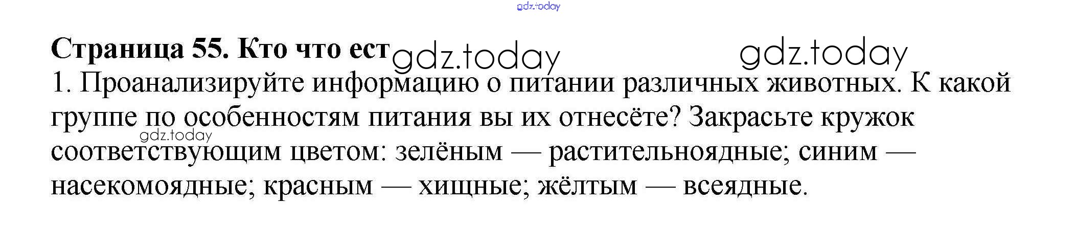 На страницах сайта gdz.today вы найдете учебный и вспомогательный материал, направленный на улучшения знаний школьной программы. ГДЗ - онлайн мир знаний Решение к части 1. Страницы 55 Рабочей тетради по Окружающему миру для 3 класса Плешаков, Новицкая Просвещение Перспектива 2013
