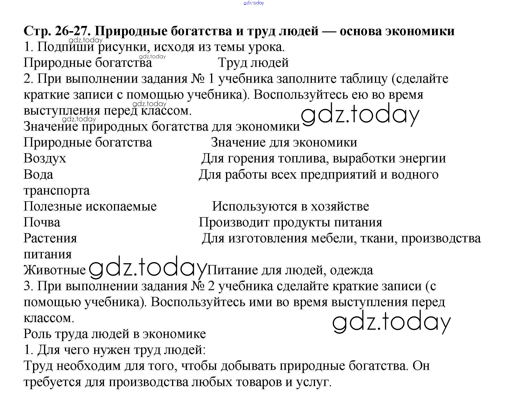 На страницах сайта gdz.today вы найдете учебный и вспомогательный материал, направленный на улучшения знаний школьной программы. ГДЗ - онлайн мир знаний Решение к части 2. Страницы 26 Рабочей тетради по Окружающему миру для 3 класса Плешаков, Новицкая Просвещение Перспектива 2013