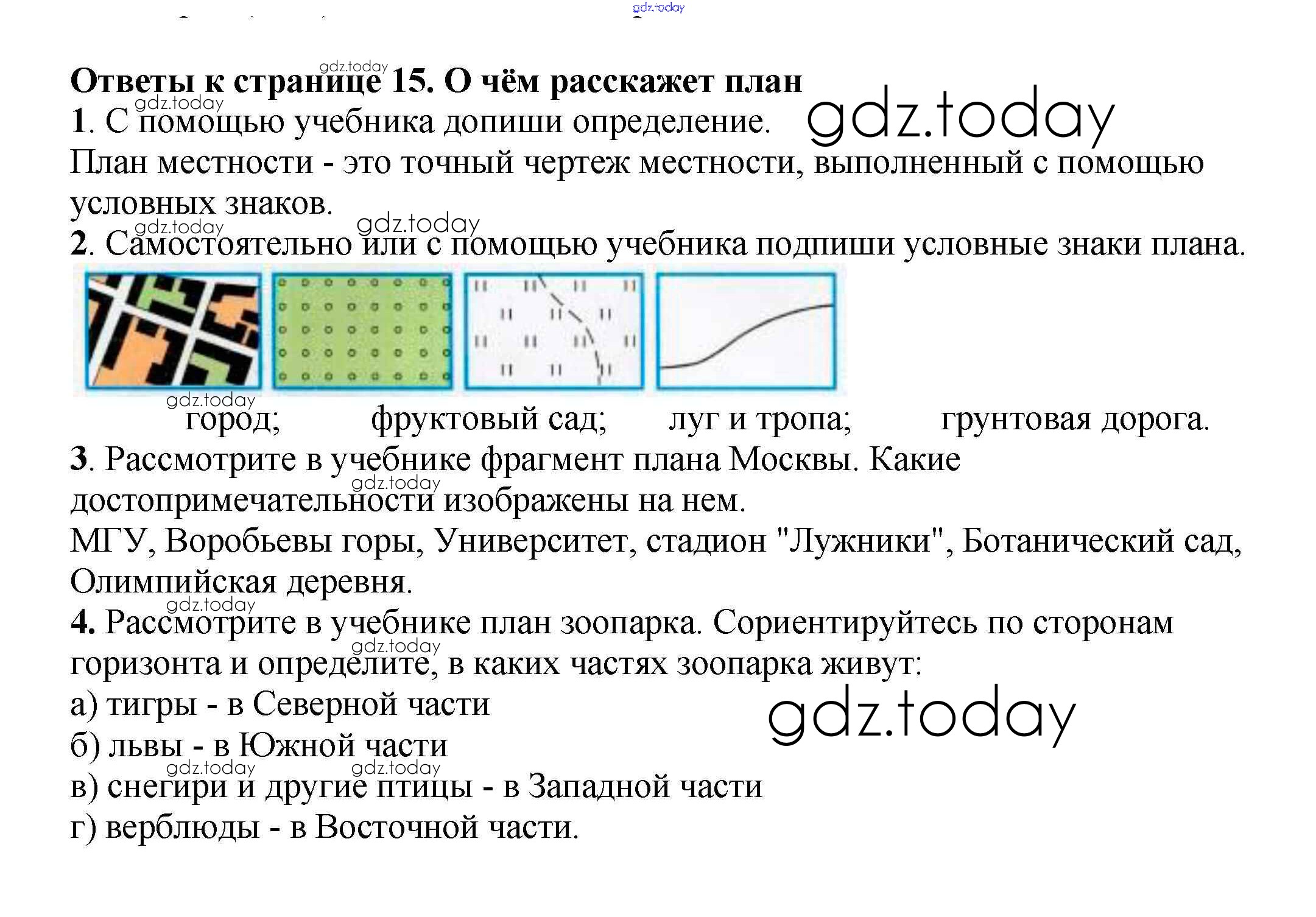 На страницах сайта gdz.today вы найдете учебный и вспомогательный материал, направленный на улучшения знаний школьной программы. ГДЗ - онлайн мир знаний Ответы к части 1. Страницы 15 Рабочей тетради по Окружающему миру для 3 класса Плешаков Просвещение Школа России 2017